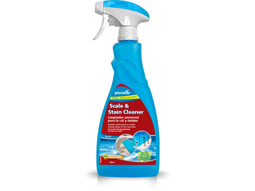 PM-102 Scale & Stain Cleaner je vysoce účinný čisticí prostředek navržený k odstraňování vápenatých usazenin a skvrn z bazénových povrchů. Jeho silně kyselá formule efektivně čistí vodní linku, dlaždice, nerezové prvky (např. žebříky, sprchy) a další povrchy, aniž by poškozovala spáry nebo uvolňovala dráždivé výpary.