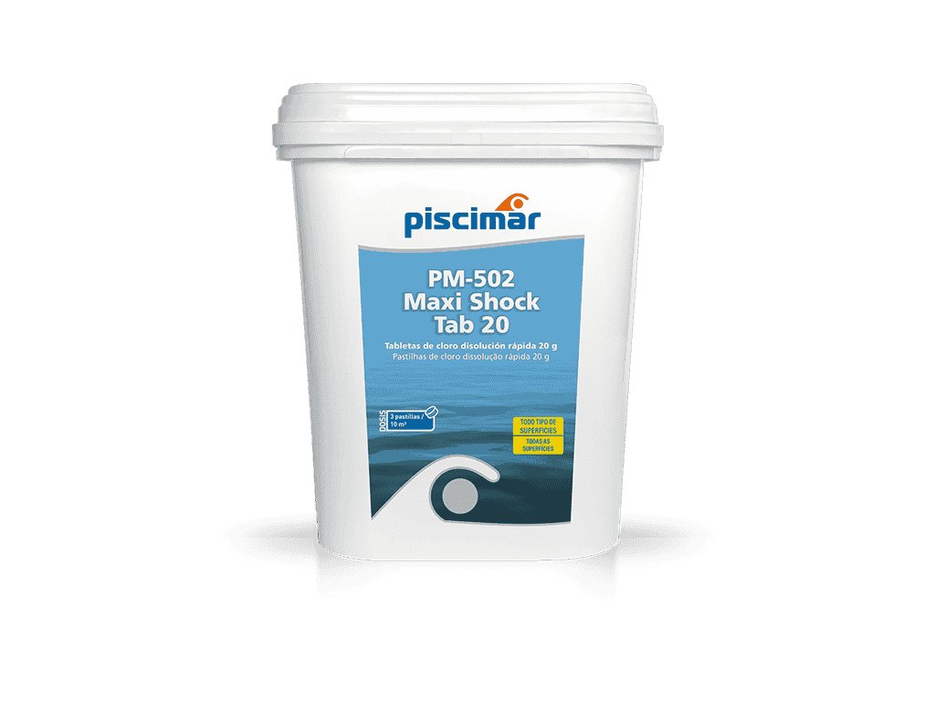 PM‑502 Maxi Shock Tab 20 jsou silné, rychle rozpustné chlorové tablety (≈ 20 g), navržené pro šokové ošetření bazénové vody. Obsahují aktivní trichloroisokyanurát sodný (50–60 %), který poskytuje intenzivní jednorázovou dávku chloru pro okamžitý zásah proti řasám, bakteriím a organickým nečistotám.