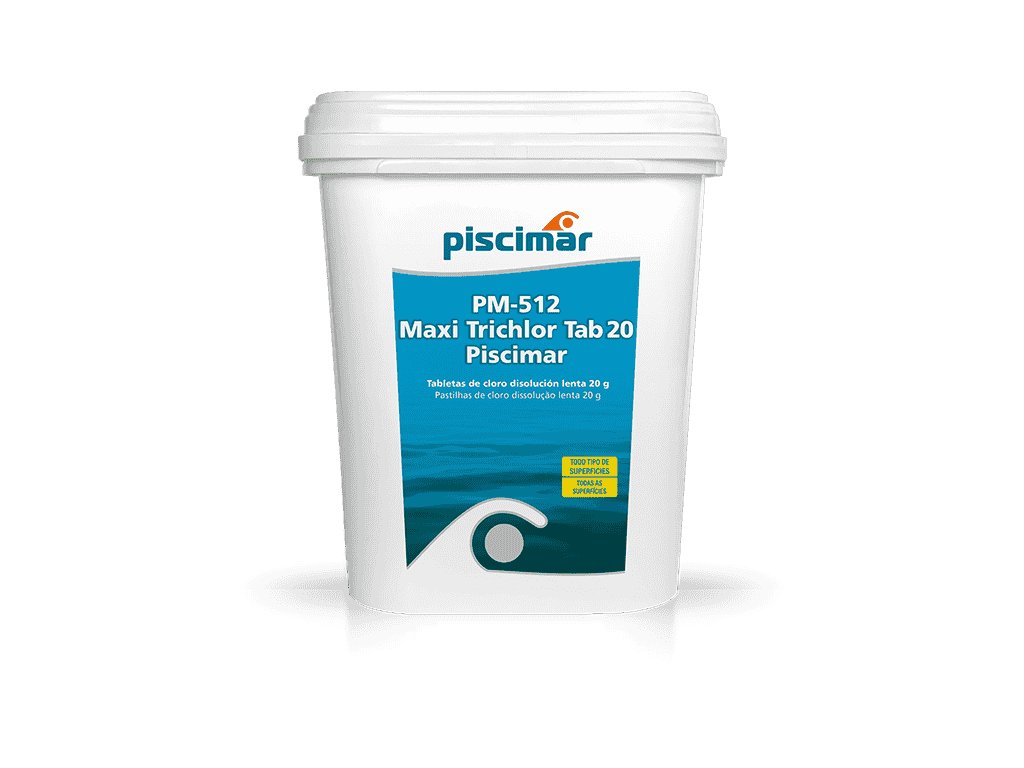 PM-512 Maxi Trichlor Tab 20 jsou pomalu rozpustné chlorové tablety o hmotnosti 20 g, obsahující 90 % aktivního chloru ve formě trichlorisokyanurové kyseliny (TCCA). Jsou ideální pro průběžnou dezinfekci bazénové vody, udržují její čistotu a zabraňují růstu řas a bakterií. Tablety jsou vhodné pro všechny typy bazénů a lze je používat v dávkovačích nebo skimmerech.