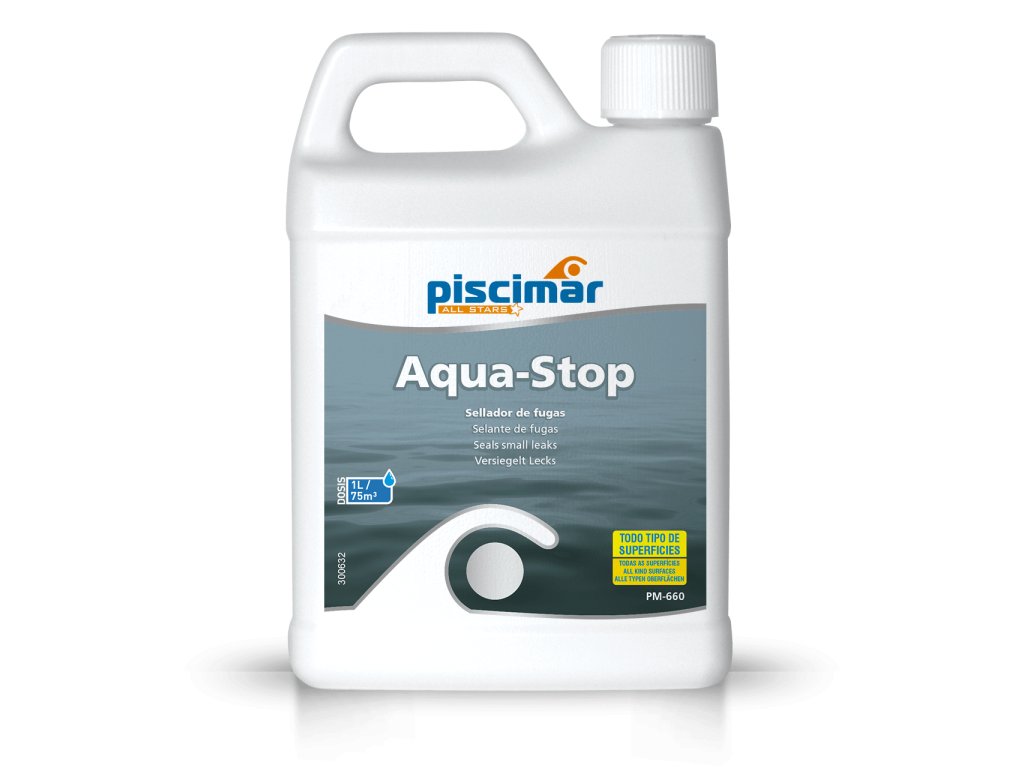 PM-660 Aqua Stop je vysoce účinný těsnicí prostředek navržený k utěsnění malých netěsností, pórů a mikrotrhlin v bazénech a jejich hydraulických systémech. Tento viskózní kapalný produkt se přidává přímo do vody, kde se smísí a při kontaktu se vzduchem tuhne, čímž efektivně utěsňuje netěsnosti. Je kompatibilní s bazény s fólií, polyesterovými a betonovými povrchy.