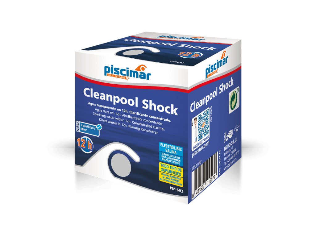 PM-693 Cleanpool SHOCK je vysoce účinný šokový koagulant ve formě tablet, navržený pro rychlé odstranění zákalu a zlepšení průzračnosti bazénové vody. Tento přípravek shlukuje jemné částice (např. opalovací krémy, tuky, prach), které by jinak prošly filtrem, a umožňuje jejich snadné odstranění filtračním systémem. Cleanpool SHOCK je kompatibilní se všemi typy bazénových povrchů a filtračních systémů, včetně solné elektrolýzy.